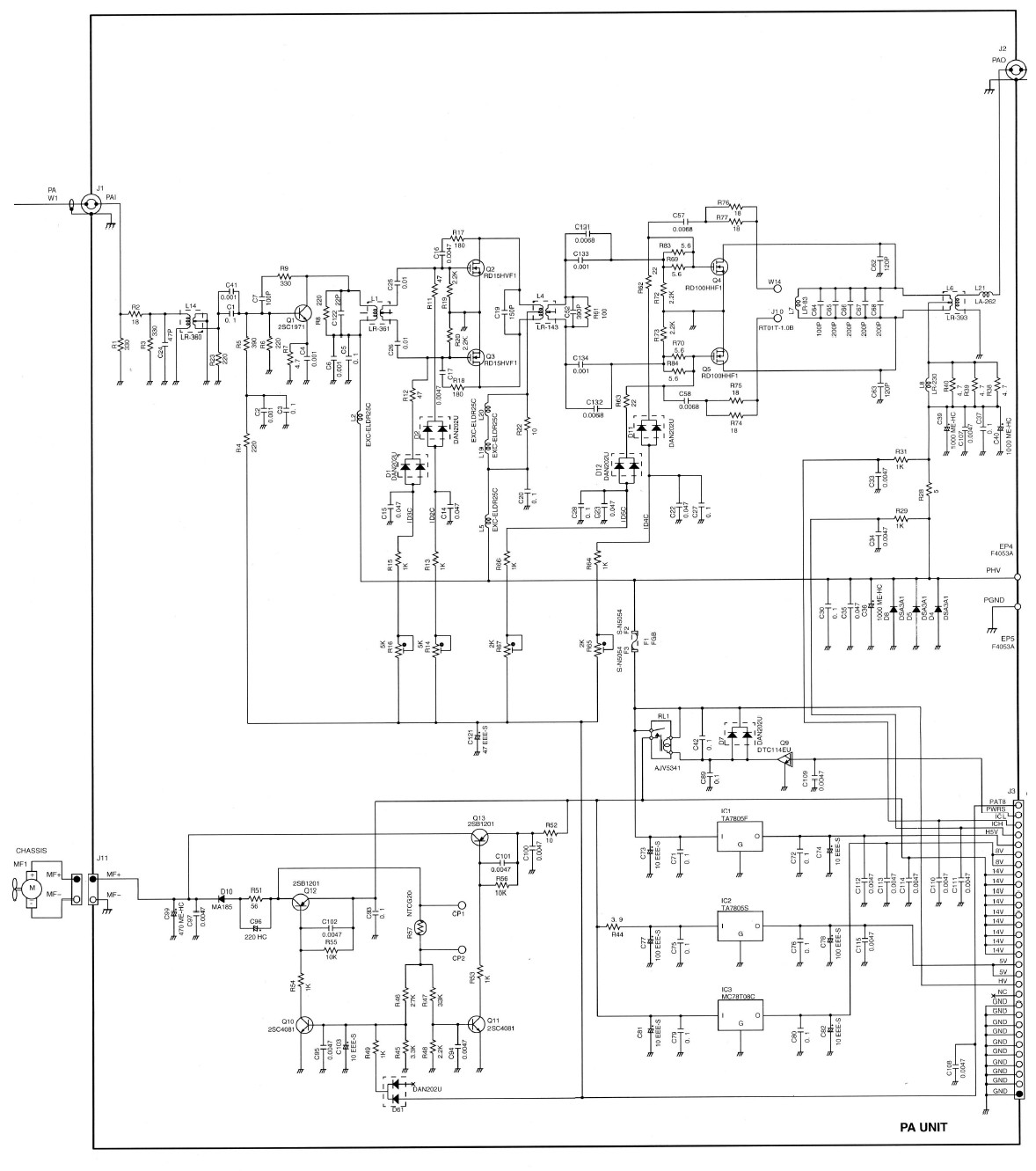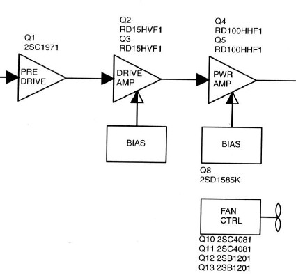 Greg Buhyoff K2UM kindly provided a partial block diagram and schematic of the new PA Unit (originals courtesy Icom Inc.) I am also indebted to Greg for supplying photos of the new PA Unit.