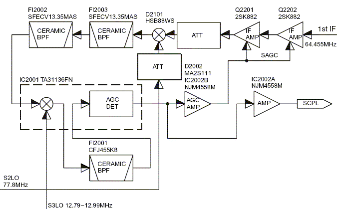 When switched in, Preamps 1 and 2 do not raise the audible noise level in the receiver as much as they did in the Pro2. In the Pro3, the preamps have been designed for highly linear large-signal handling, consistent with a low noise figure. Preamp 1 has negative feedback to improve linearity without compromising NF. There has also been a significant gain redistribution. The first mixer has lower gain, with the result that the scope module in the Pro3 has its ownRF amplifier to bring up the vertical sensitivity of the scope.