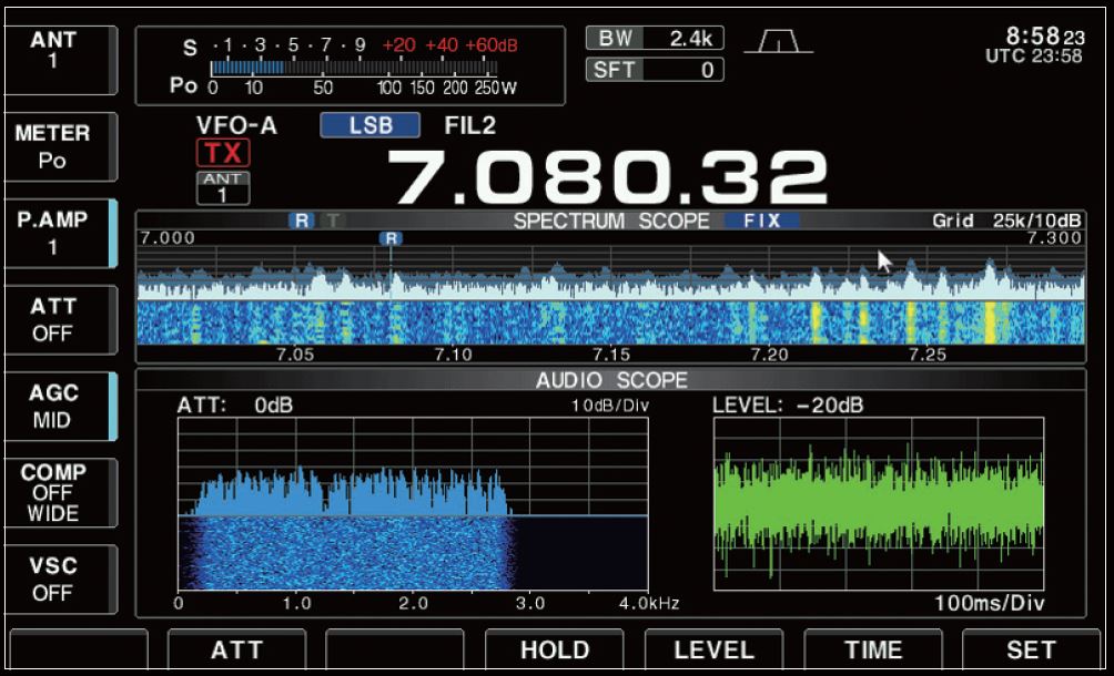 View the new Ver. 2.0 and higher spectrum scope/waterfall and audio scope screen modes.