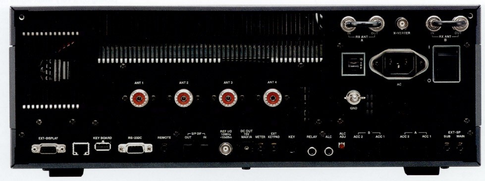 | View IC-7800 front and rear panels. |