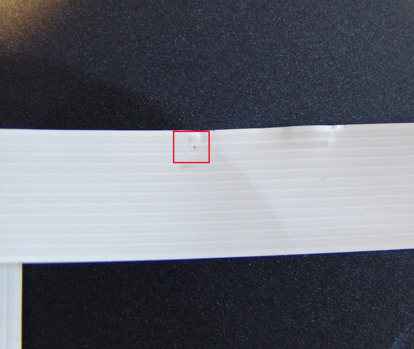 Carefully, I removed the ribbon cable and checked it with a microscope (I have an SMD/SMT repair workstation) and noticed the ribbon cable was punctured, probably due to a sharp edge of the sheet-metal resting on the ribbon cable.